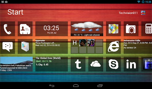 Live tiles for Gmail, Facebook, Calendar, News, Weather, Stock market etc