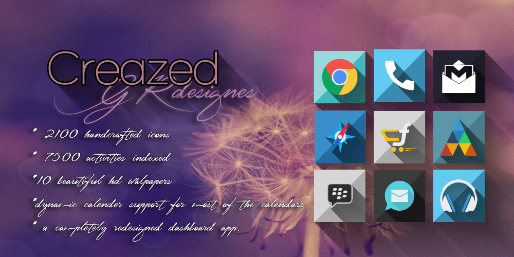 Creazed Icon Pack Apk - is an amazing icon pack for Android users. These icons are designed at XXHDPI decision that reinforce many high density phones, each and every icon is easy and sharp in order to seem to be absolute best on any heritage.