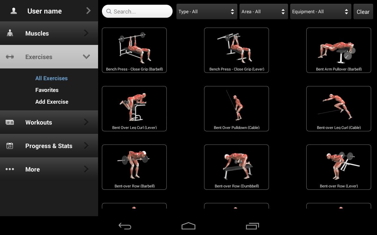 - Slick new interface with easy to find workout and exercise areas featuring animated exercise icons